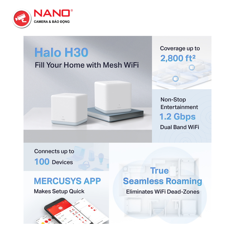 1.2 Gbps Dual Band WiFi – Halo H30 provides fast and stable connections up to 100 devices with speeds of up to 1,200 Mbps and works with major internet service providers (ISPs) and modems.