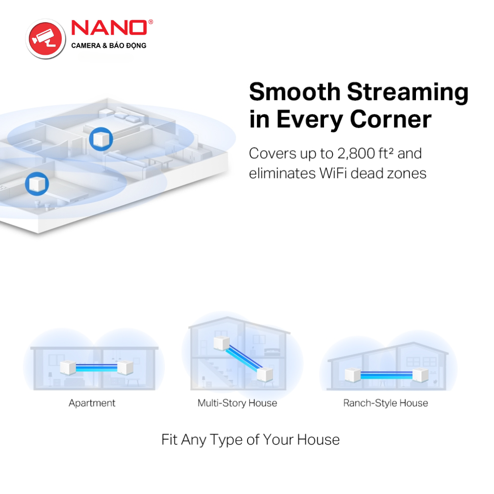 Whole Home Coverage – Blanket up to 2,800 ft² (260 m²) with high-speed WiFi, eliminating WiFi dead zones at your home.