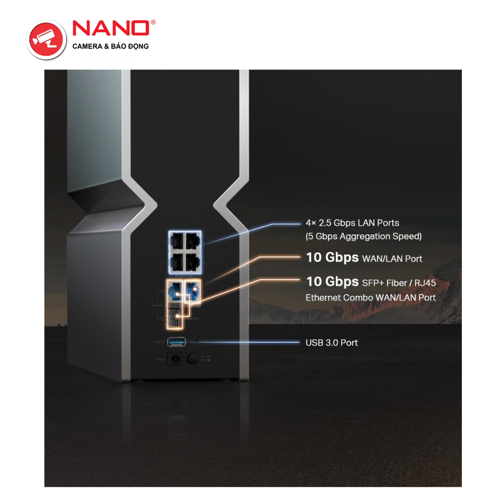 - Dual 10G Ports: 1× 10 Gbps Ethernet/Fiber Combo WAN/LAN port + 1× 10 Gbps WAN/LAN port + 4× 2.5 Gbps ports + 1× USB 3.0 port ensure max flexibility and boosted throughput.