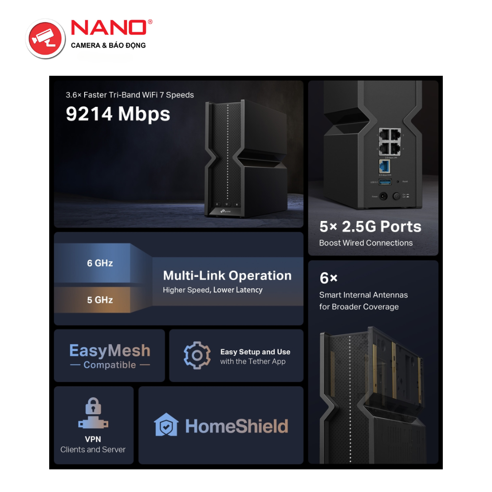 - Blazing-Fast 9214 Mbps Tri-Band WiFi 7: Enables your devices to run at full speed. Enjoy fluent 4K/8K streaming, immersive AR/VR gaming, and blazing-fast downloads.