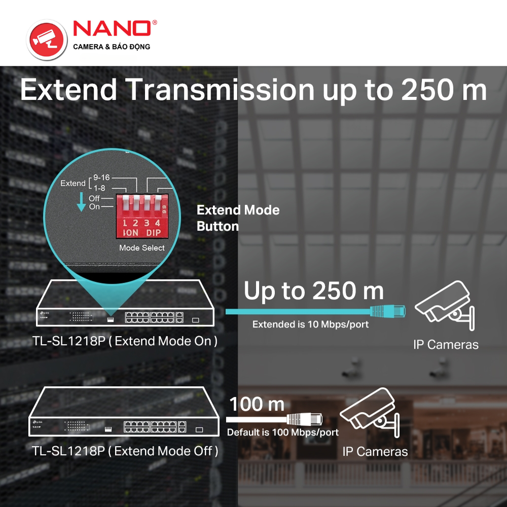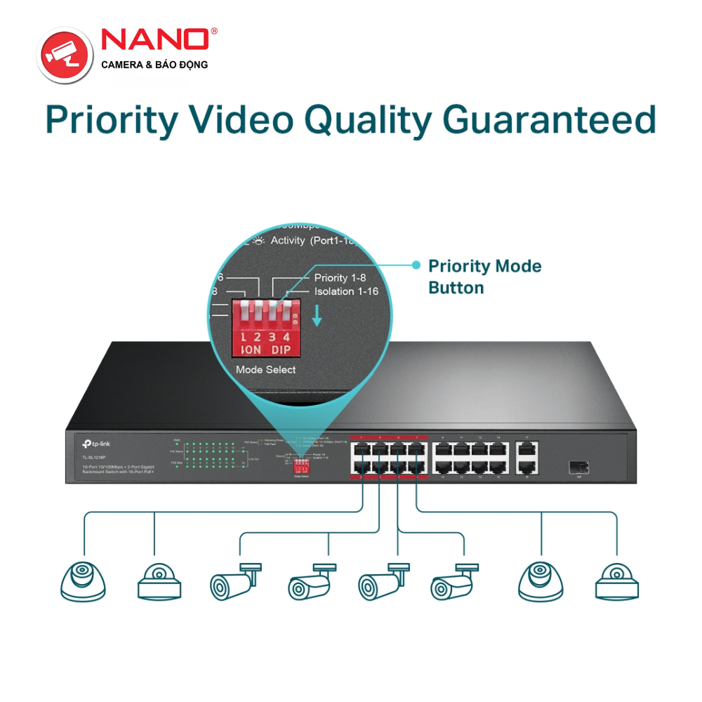 TÍNH NĂNG: Chế Độ Mở Rộng Cho Truyền PoE 250m, Chế Độ Ưu Tiên Cho Cổng 1-8, Chế Độ Cách Ly, Cắm và Chạy