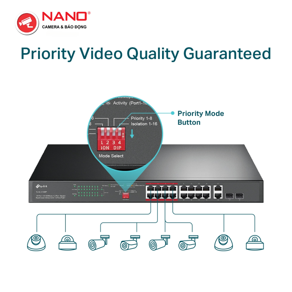 TÍNH NĂNG: Chế Độ Mở Rộng Cho Truyền PoE 250m, Chế Độ Ưu Tiên Cho Cổng 1-8, Chế Độ Cách Ly, Cắm và Chạy
