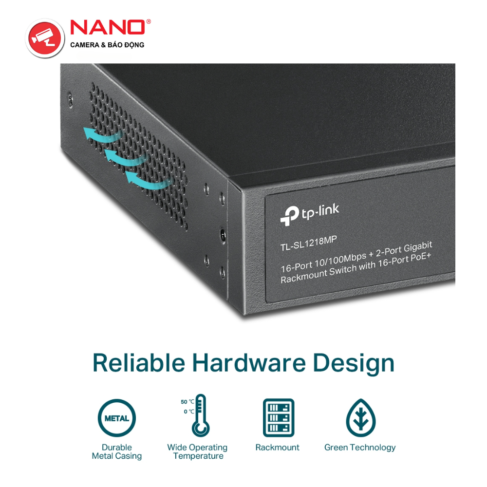 Switch Rackmount, 16 Cổng 10/100 Mbps + 2 Cổng Gigabit với 16 Cổng PoE+