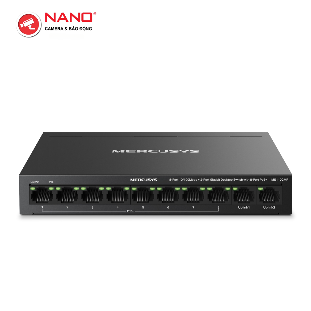 CỔNG: 8× Cổng 10/100M PoE+, 2× Cổng Gigabit Non-PoE