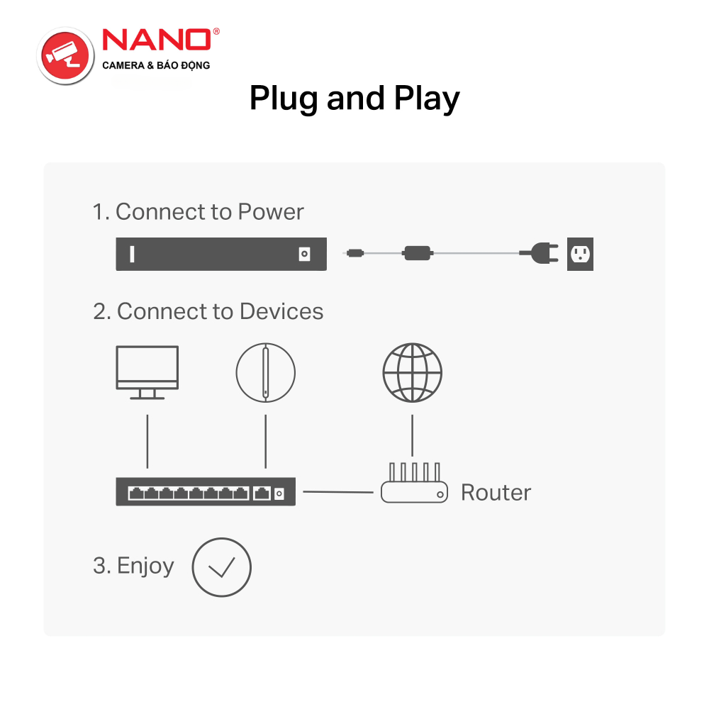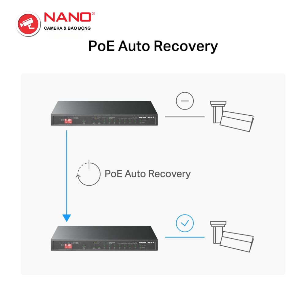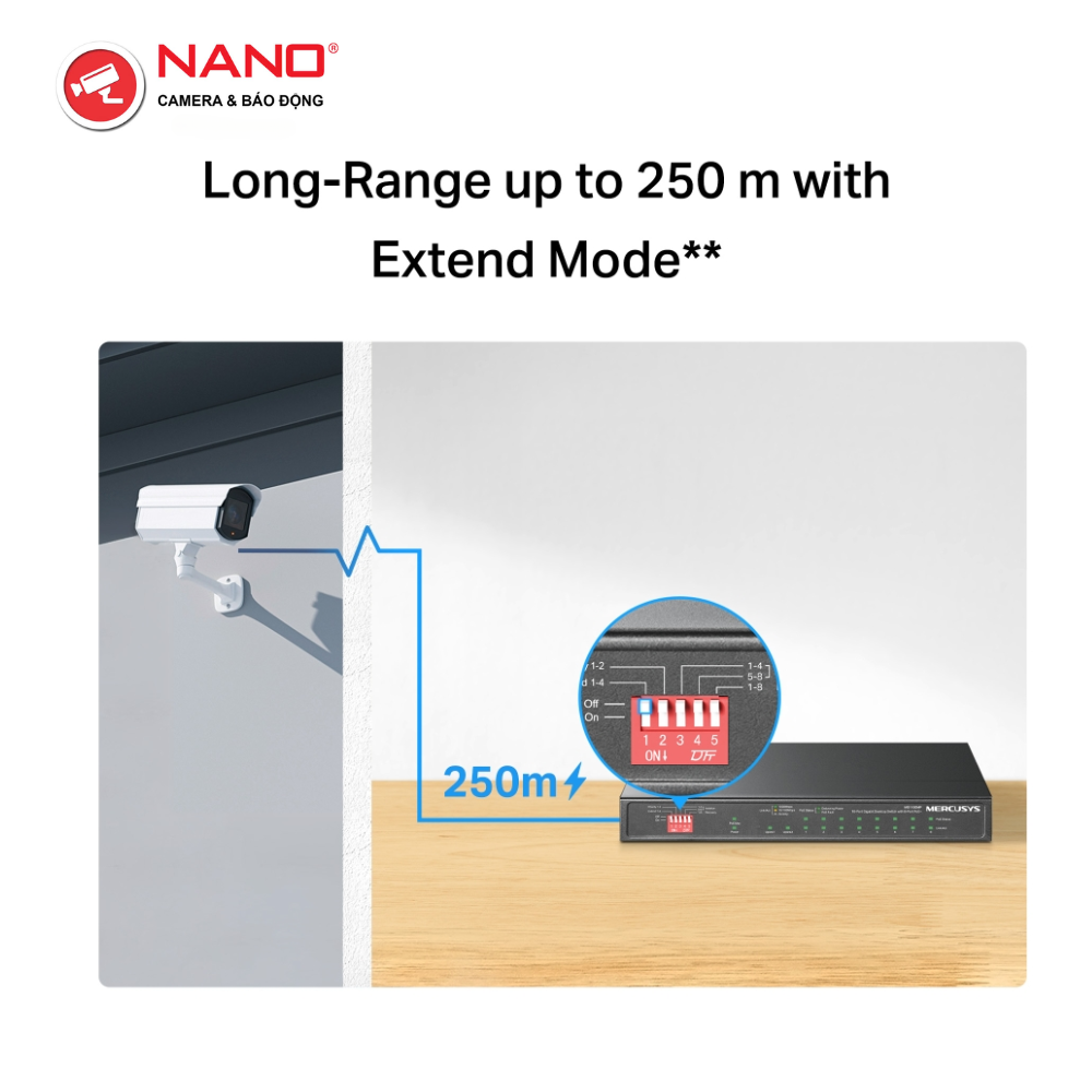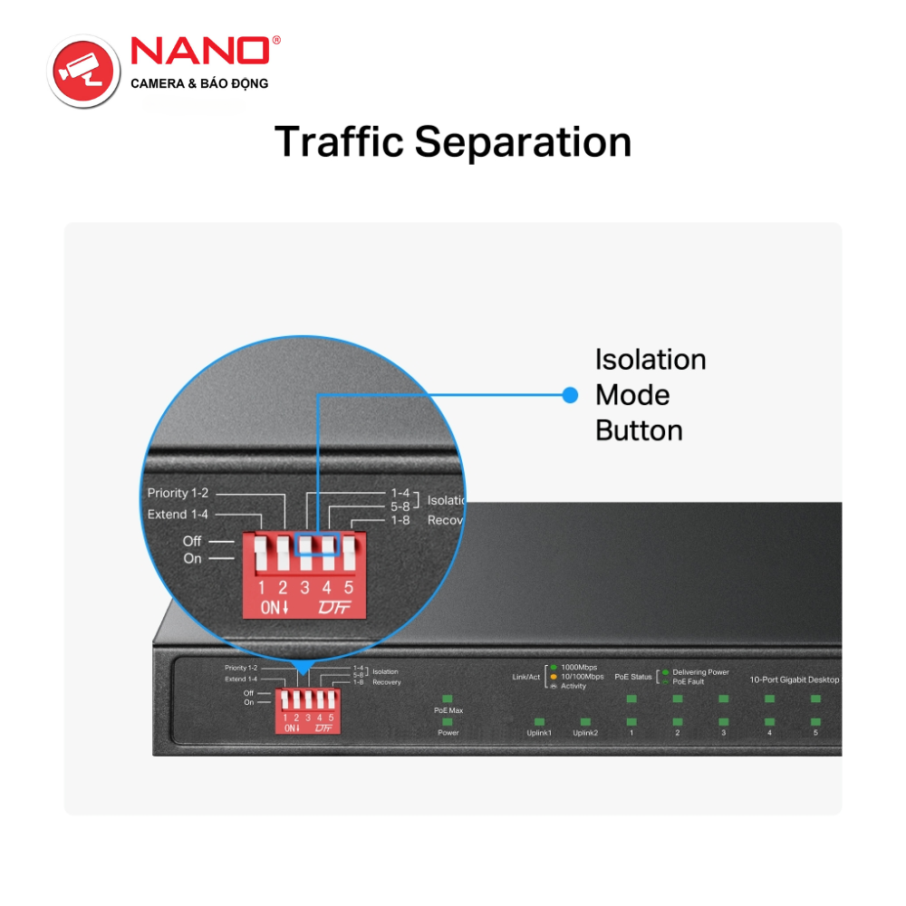 TÍNH NĂNG: Chế độ mở rộng truyền PoE lên đến 250m, Ưu tiên cổng 1-2, Chế độ cách ly, Tự động khôi phục PoE, Cắm và chạy