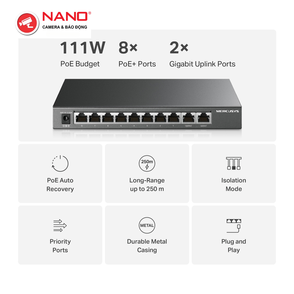 CỔNG: 8× Cổng Gigabit PoE+, 2× Cổng Gigabit Non-PoE