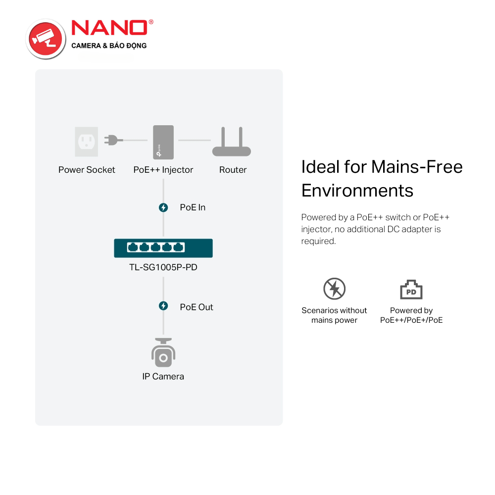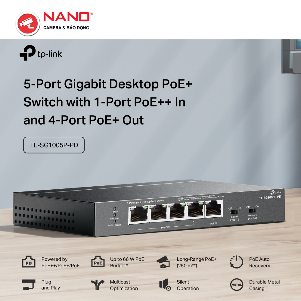 PORT: 4× Gigabit PoE+ Out Ports, 1× Gigabit PoE++ In Port