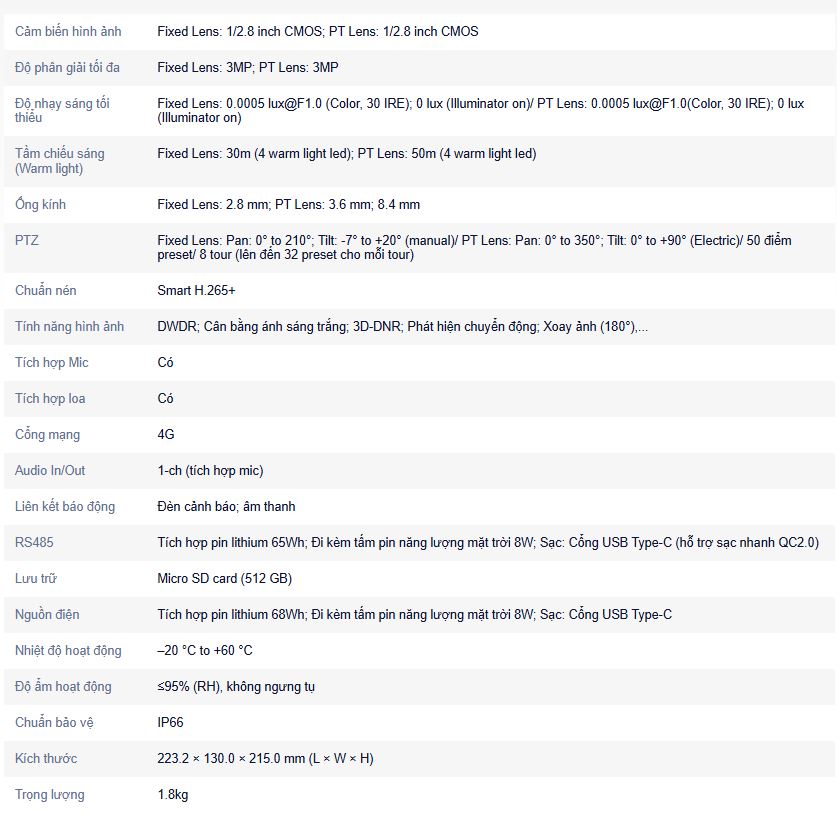 Camera IP 4G ống kính kép 3+3MP, công nghệ Wizcolor, Zoom hybrid 6x, đàm thoại hai chiều, cảnh báo bằng còi và đèn chủ động, chống bụi và nước chuẩn IP66.