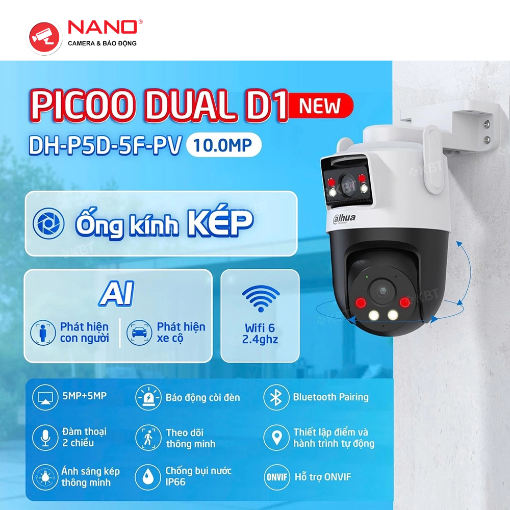 Thông số kỹ thuật camera Wifi DAHUA Picoo Dual D1 10MP (DH-P5D-5F-PV)