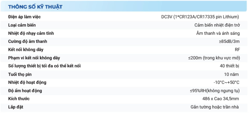 - Sử dụng pin tuổi thọ lên tới 10 năm