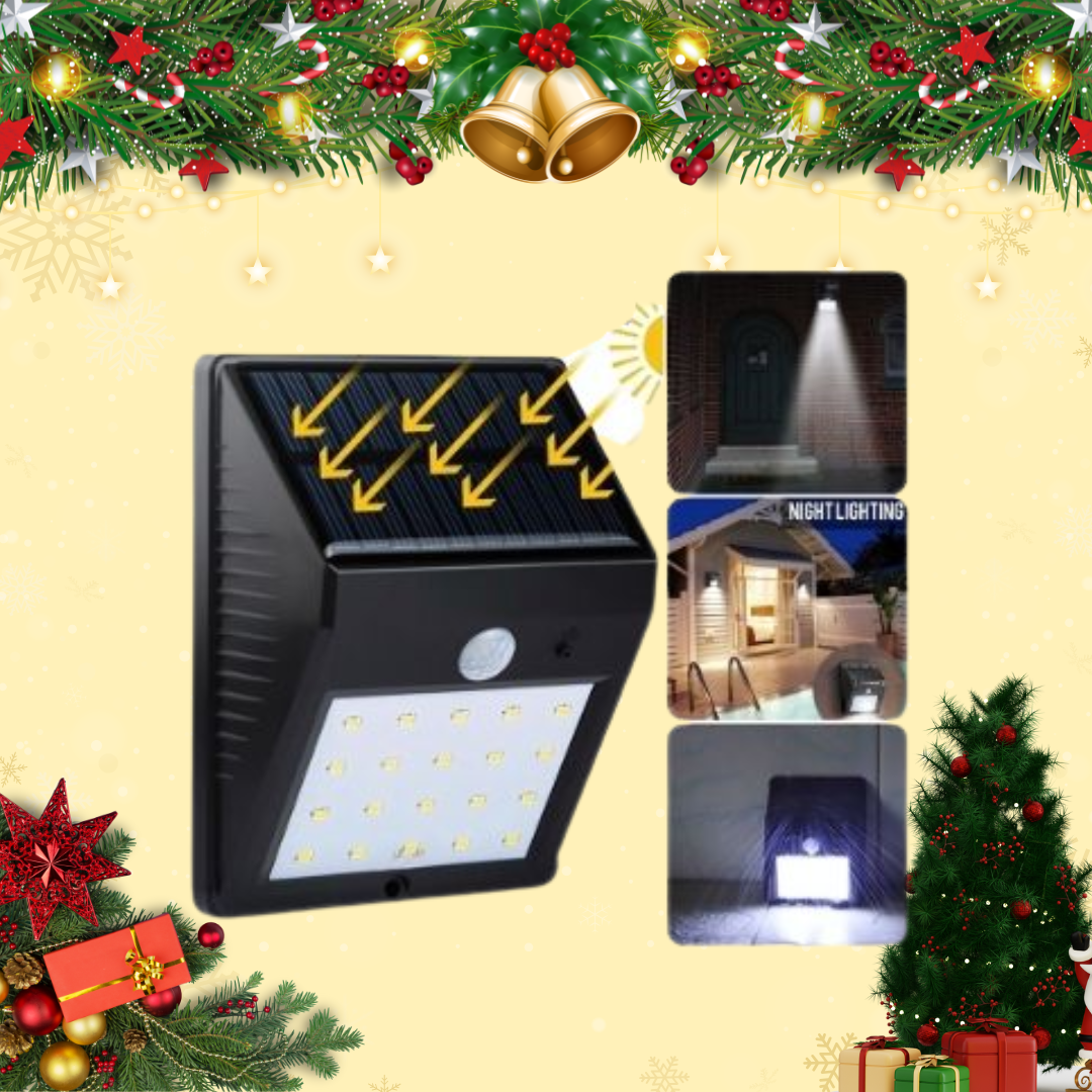 Đèn cảm ứng hồng ngoại năng lượng mặt trời 20 Led dùng chiếu sáng sân vườn, bể bơi, ban công, sân thượng, cổng… Đèn tích hợp cảm biến chuyển động, cảm biến ánh sáng dùng năng lượng mặt trời tiết kiệm điện và thân thiện môi trường.