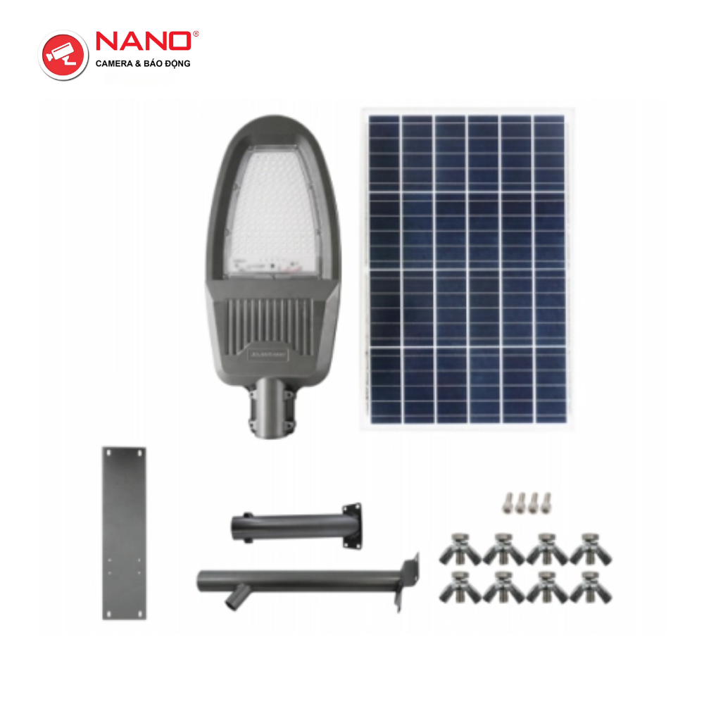 Bộ sản phẩm gồm Đèn đường + tấm pin năng lượng mặt trời + điều khiển từ xa +
