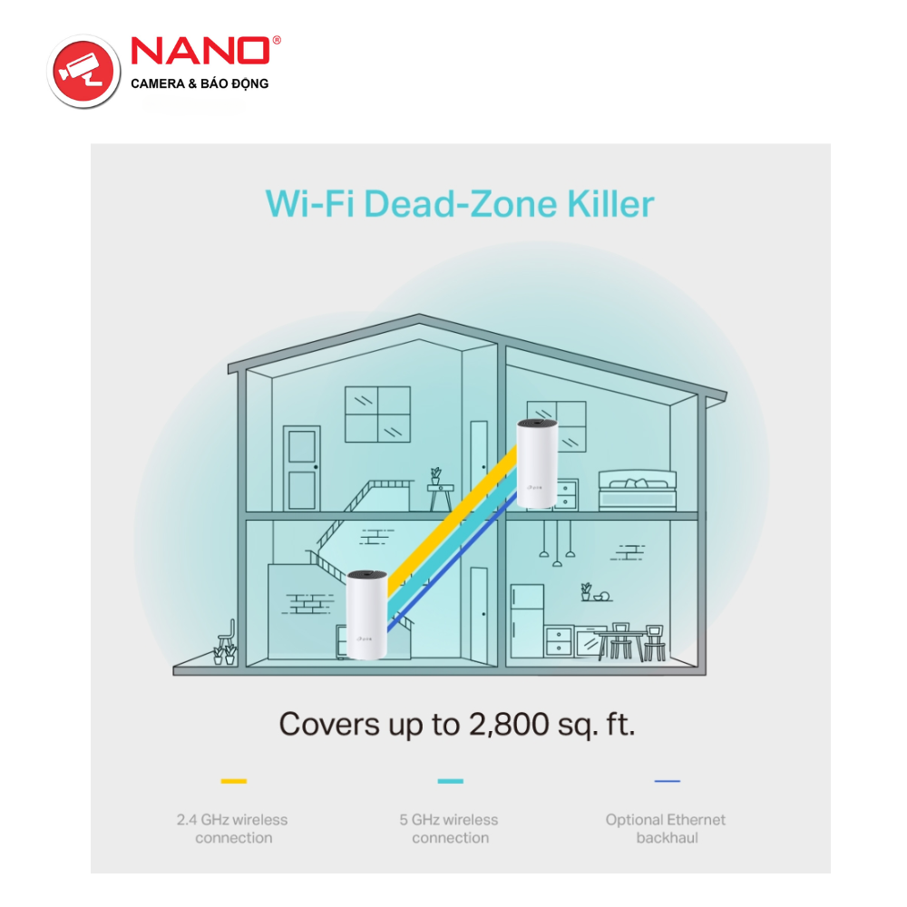 - Deco sử dụng một hệ thống các thiết bị để đạt được vùng phủ sóng Wi-Fi liền mạch cho cả căn nhà – loại bỏ các vùng Wi-Fi yếu một lần và mãi mãi!
