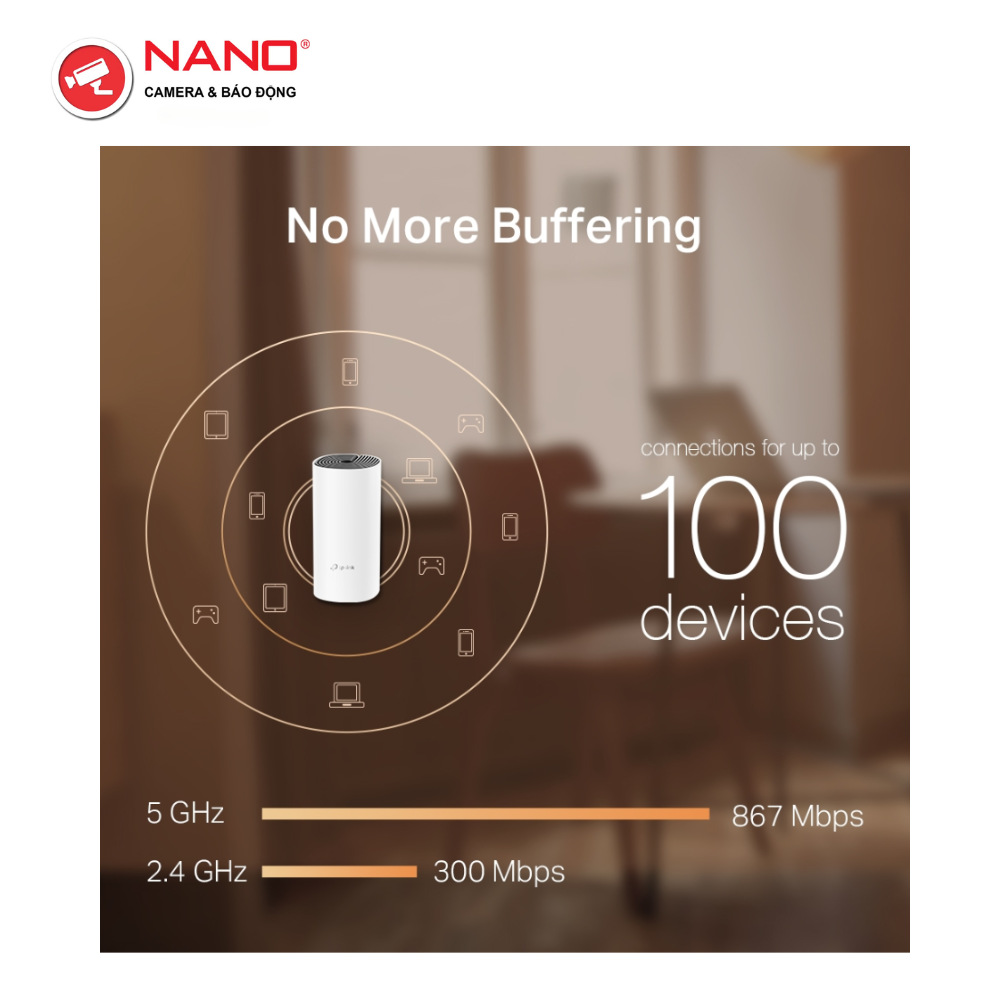 - Deco M4 cung cấp kết nối nhanh và ổn định với tốc độ lên tới 1167 Mbps với khả năng hoạt động cùng với modem và nhà cung cấp dịch vụ internet của bạn.