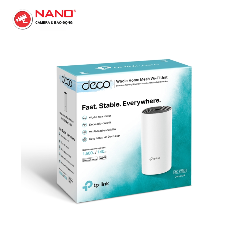 - Deco M4 cung cấp kết nối nhanh và ổn định với tốc độ lên tới 1167 Mbps với khả năng hoạt động cùng với modem và nhà cung cấp dịch vụ internet của bạn.