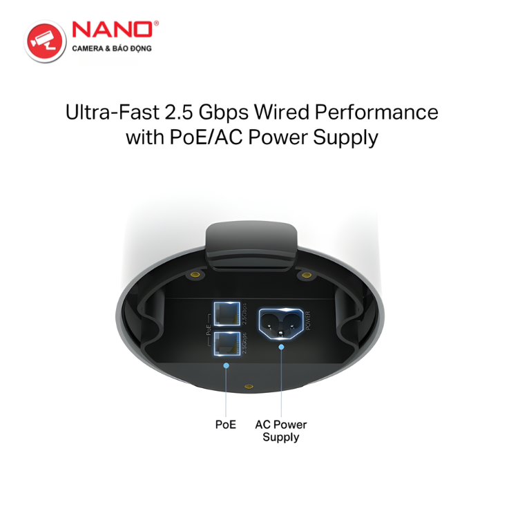 - Kết nối Có dây 2.5 Gbps – 2 cổng 2.5 Gbps đảm bảo tính linh hoạt tối đa và thông lượng được tăng cường.