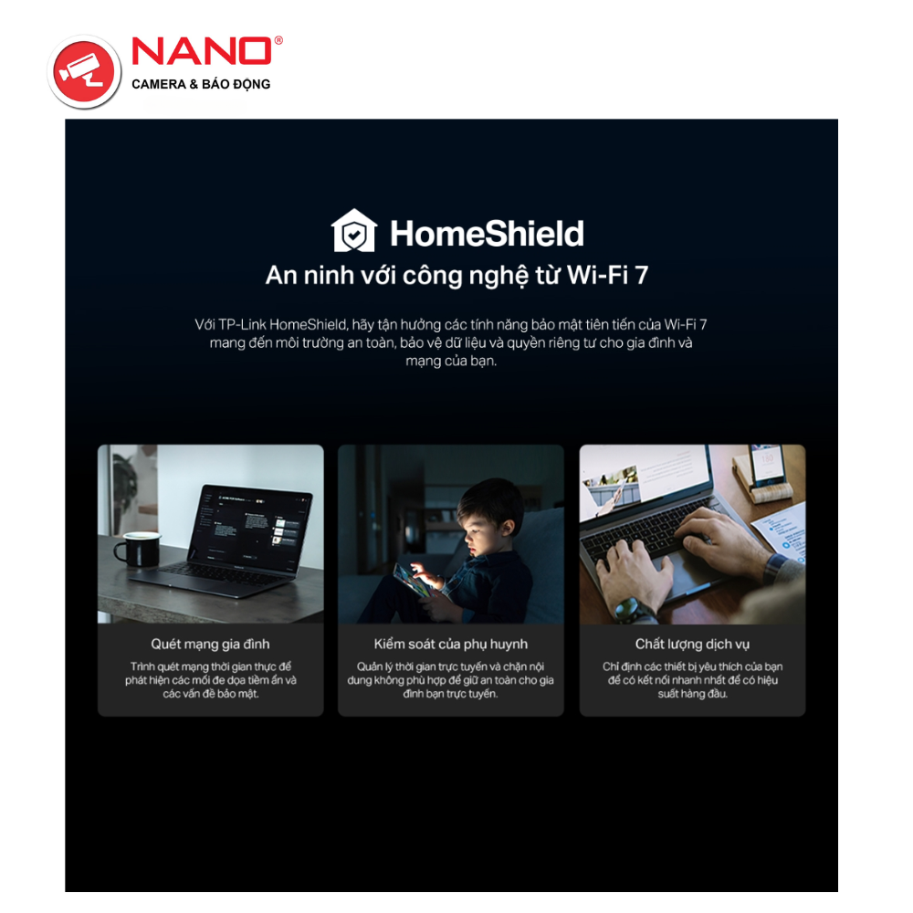 - TP-Link HomeShield: Bảo mật nâng cao bảo vệ chống lại các mối đe dọa mạng mới nhất.