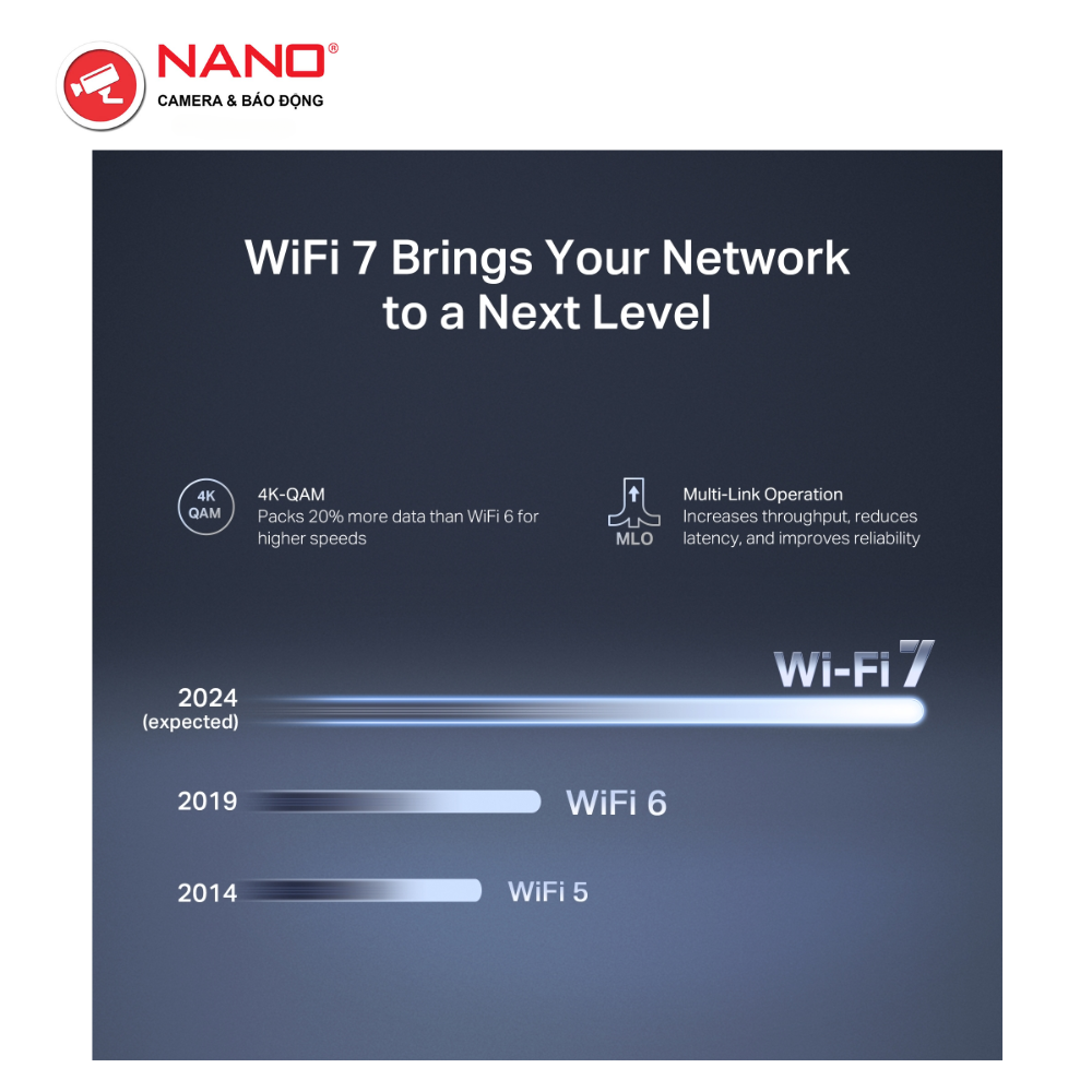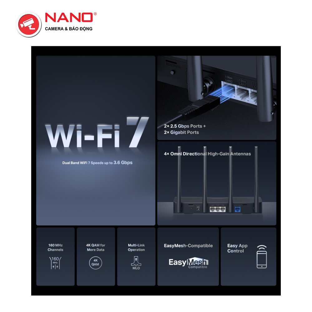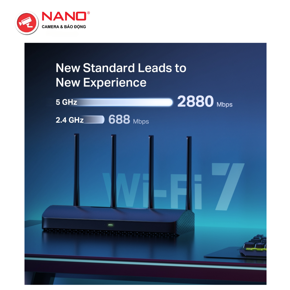 - Chuẩn WiFi 7 mới nhất: Với kênh 160 MHz, 4K-QAM, MLO và các tính năng khác mà WiFi 7 cung cấp, hệ thống mạng của bạn sẽ có hiệu suất vô cùng ấn tượng.