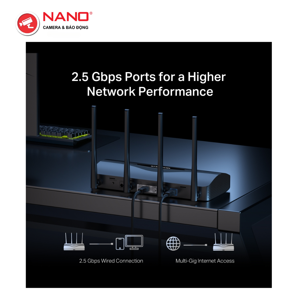 - Cổng 2.5G: 1× Cổng WAN 2.5 Gbps, 1× Cổng LAN 2.5 Gbps và 2× Cổng LAN 1 Gbps giúp thiết bị của bạn đạt đến hiệu suất tối đa.