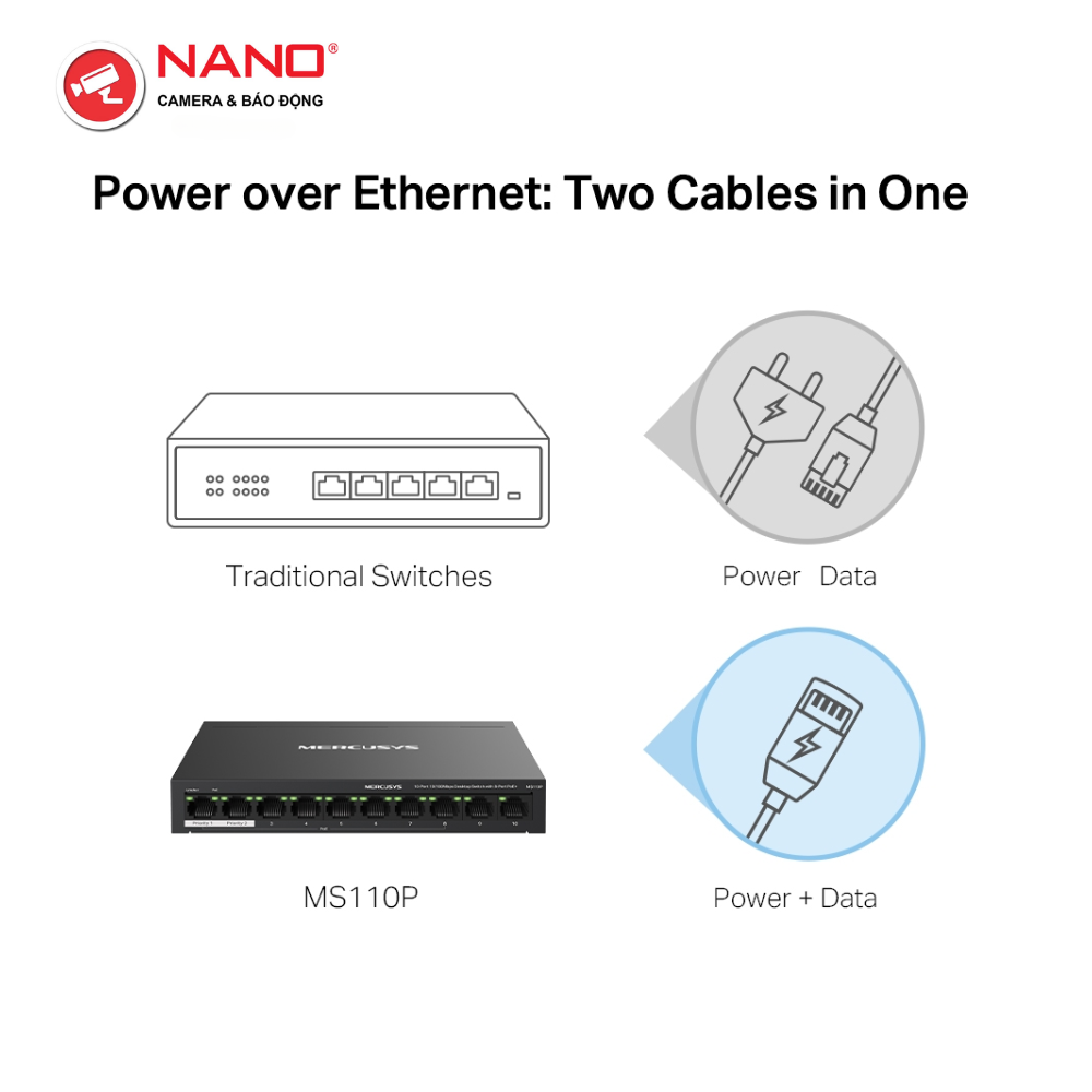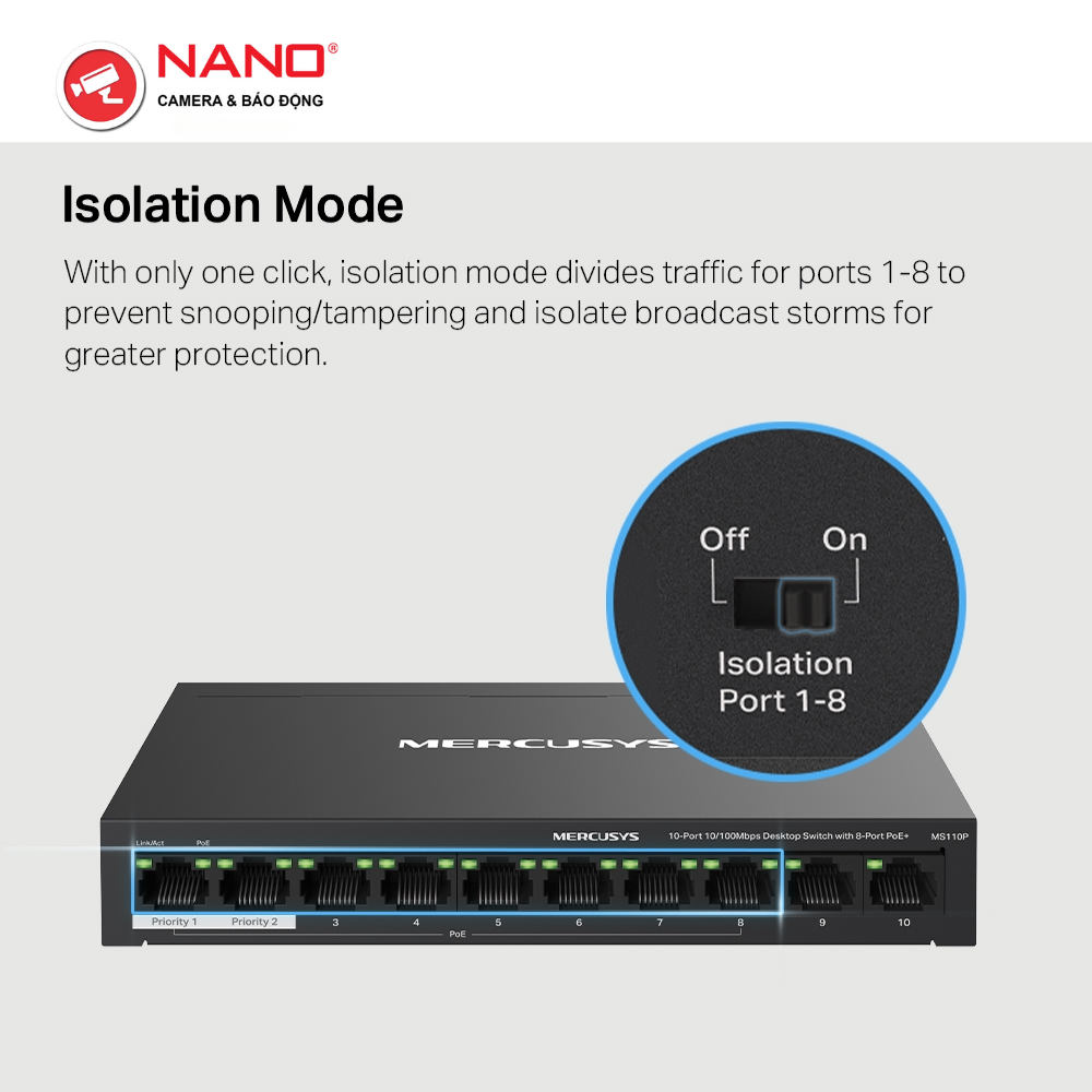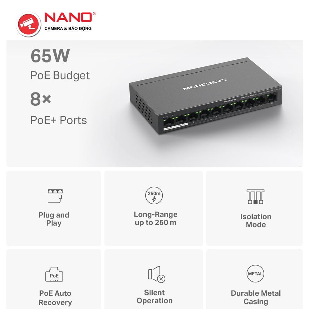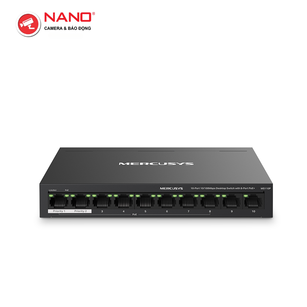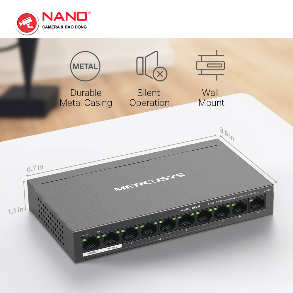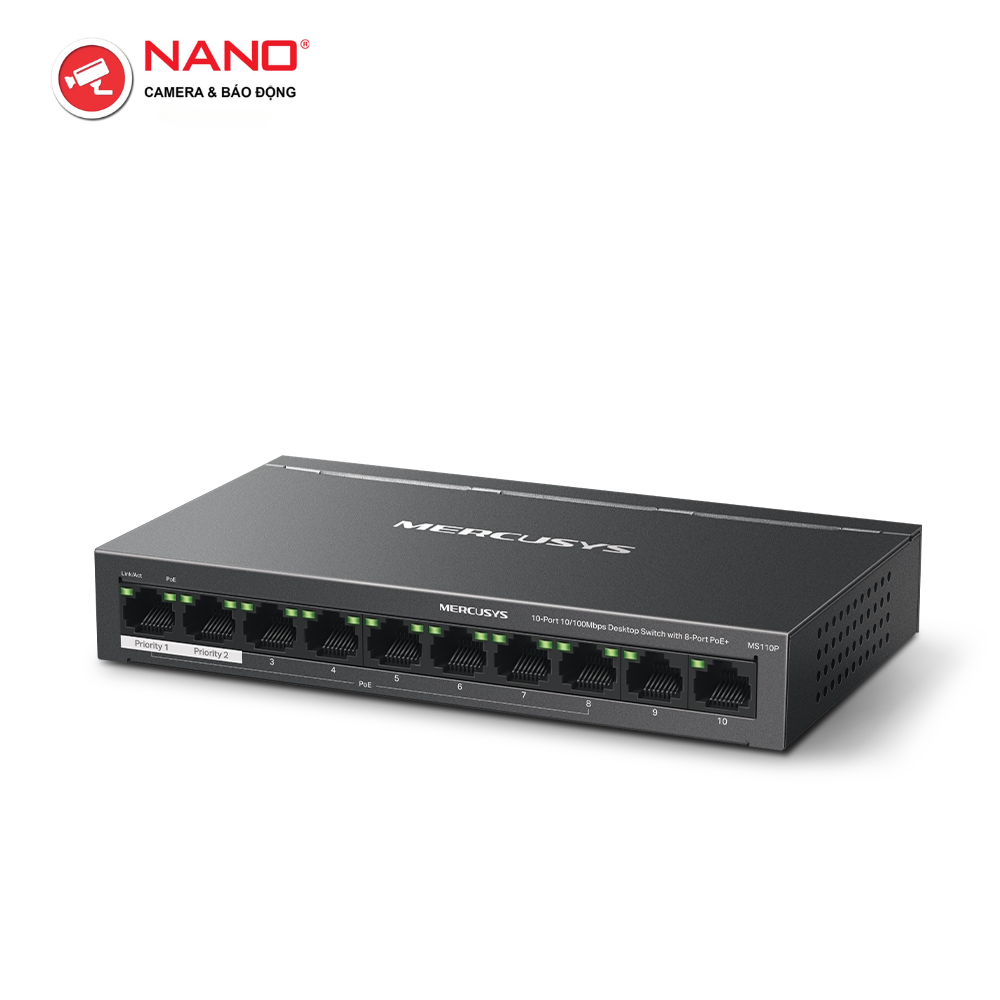 Switch Để Bàn 10 Cổng 10/100M, 8 x cổng PoE+, Vỏ kim loại PORT: 8× 10/100 Mbps PoE+ Ports, 2× 10/100 Mbps Non-PoE Ports