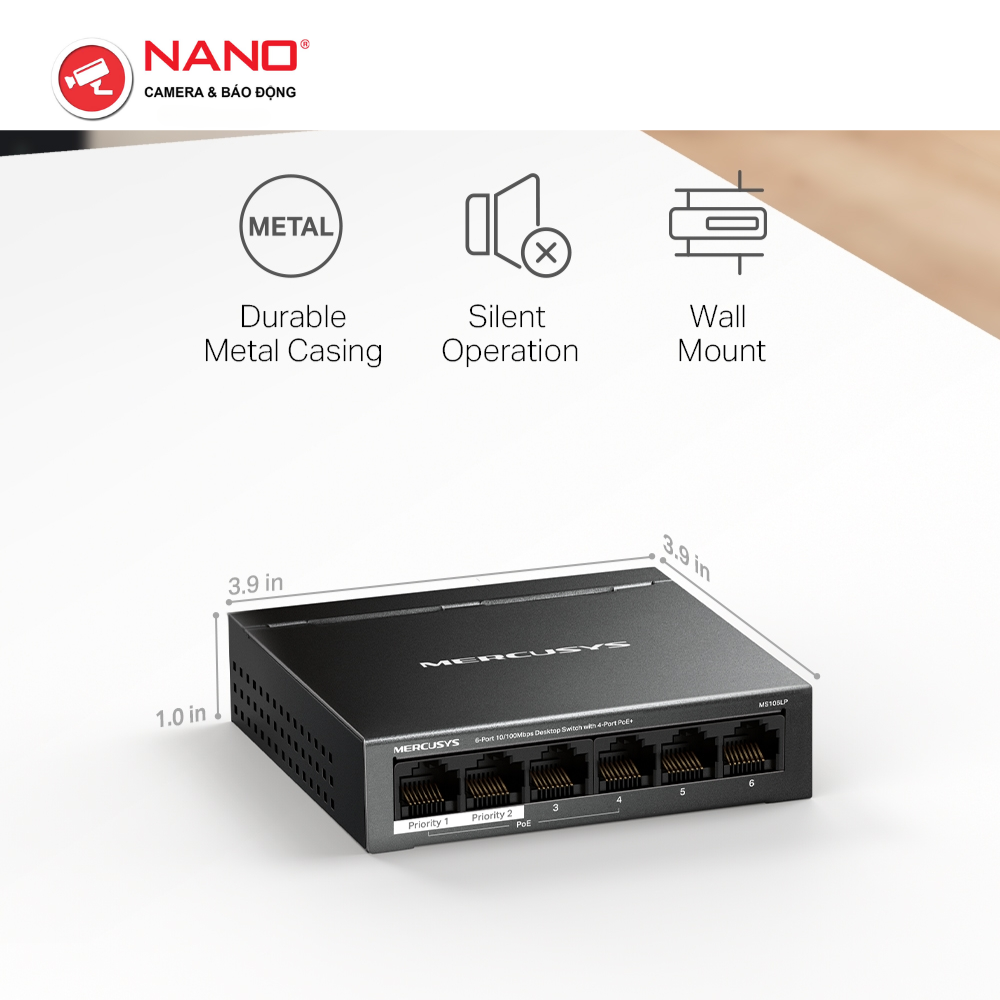Switch Để Bàn 6 Cổng 10/100M, 4 x cổng PoE+, Vỏ kim loại