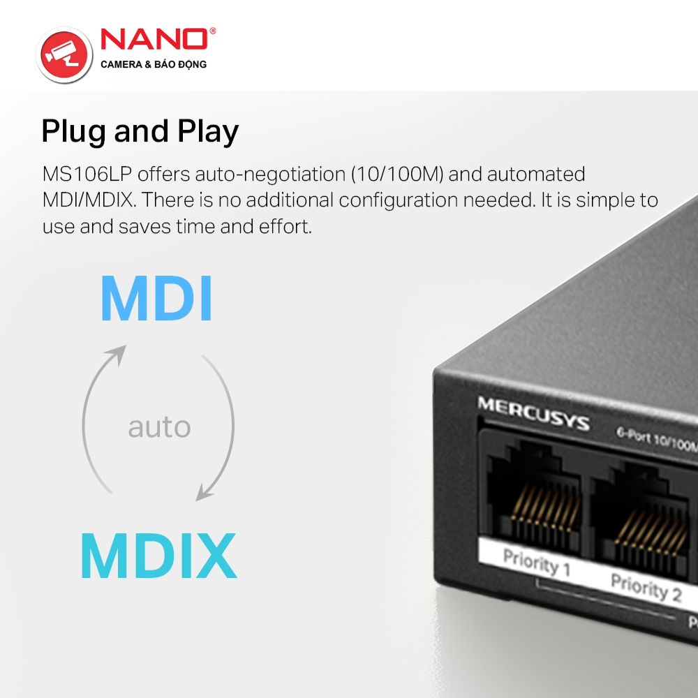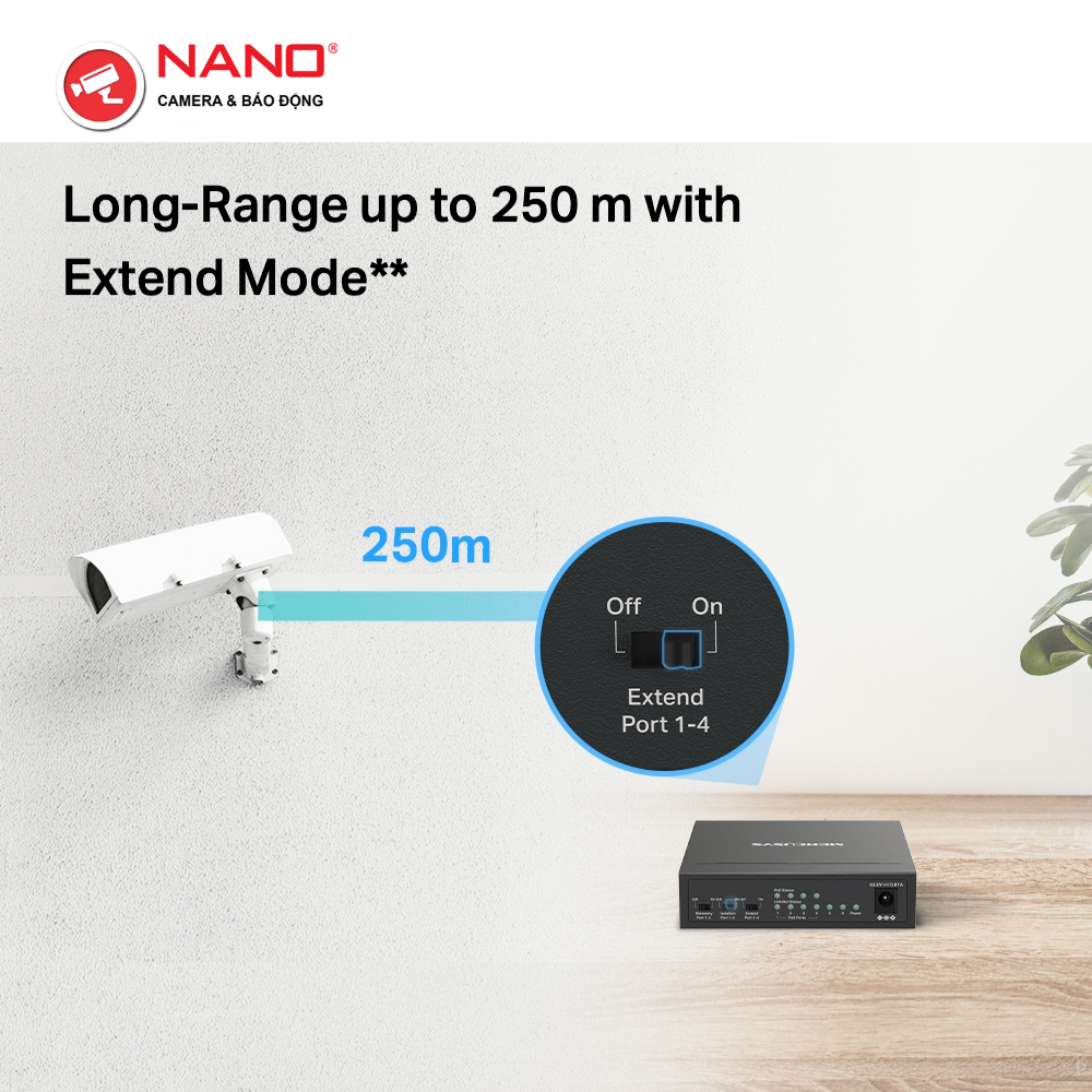 FEATURE: Extend Mode for 250m PoE Transmitting, Priority Port1-2, Isolation Mode, PoE Auto Recovery, Plug and Play