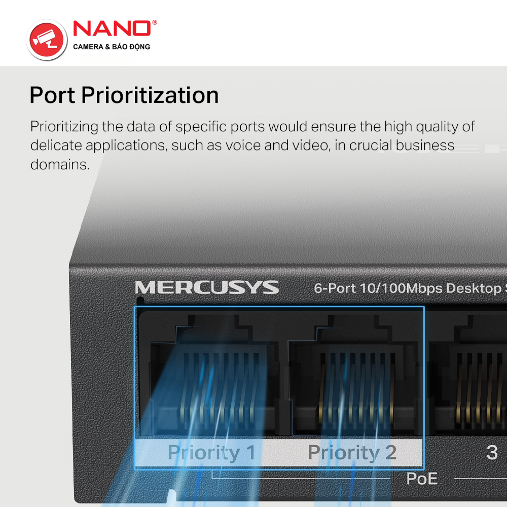 PORT: 4× 10/100 Mbps PoE+ Ports, 2× 10/100 Mbps Non-PoE Ports