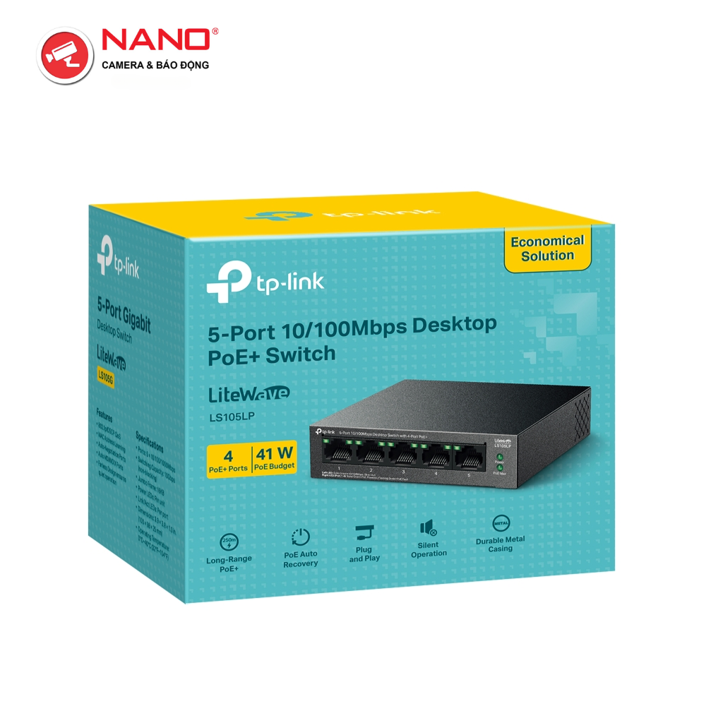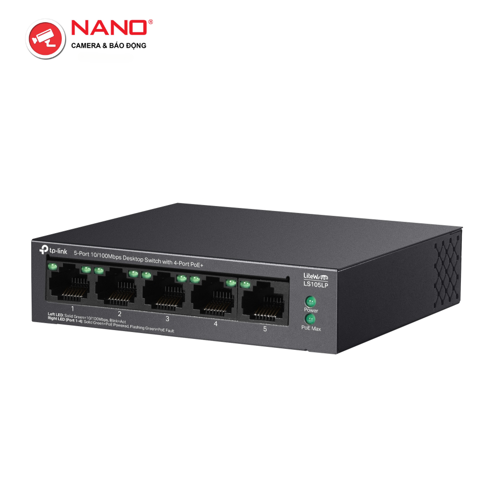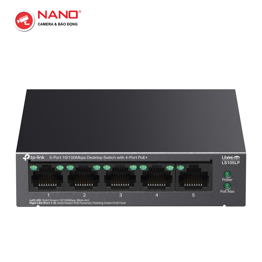 CổNG: 4× 10/100 Mbps cổng PoE , 1× 10/100 Mbps Cổng không POE