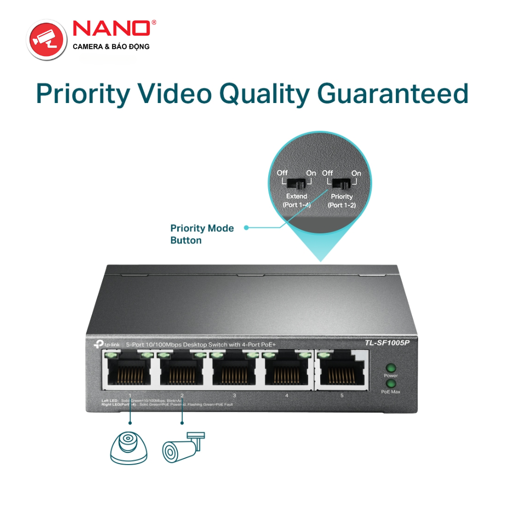 TÍNH NĂNG: Chế Độ Mở Rộng Cho Truyền PoE 250m, Chế Độ Ưu Tiên Cho Cổng 1-2, Cắm và Chạy