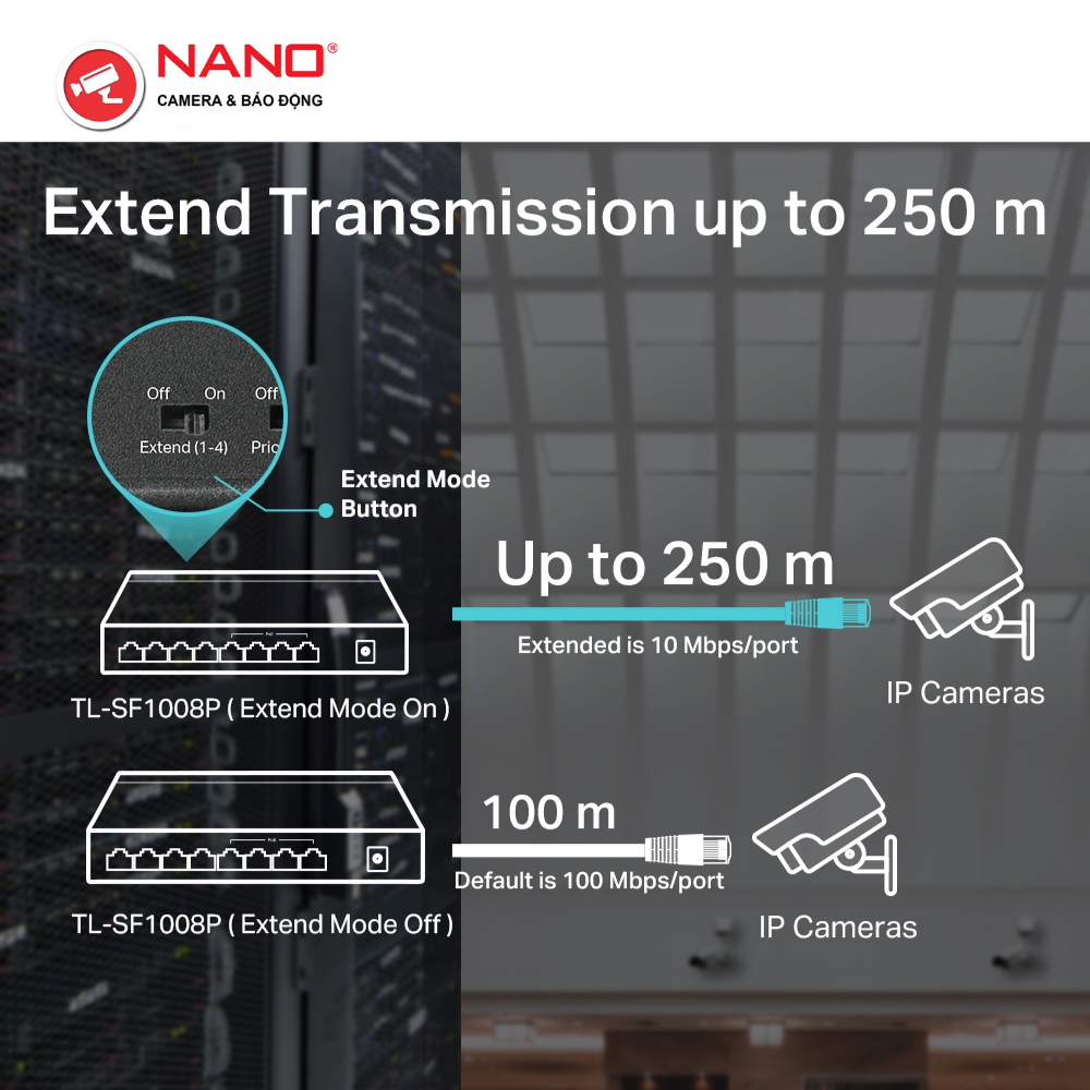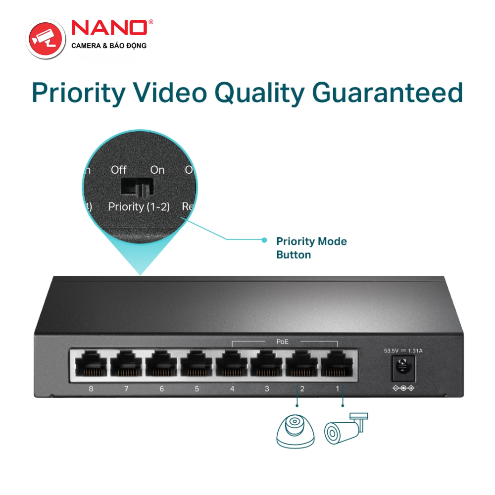 TÍNH NĂNG: Chế Độ Mở Rộng Cho Truyền PoE 250m, Chế Độ Ưu Tiên Cho Cổng 1-2, Cắm và Chạy