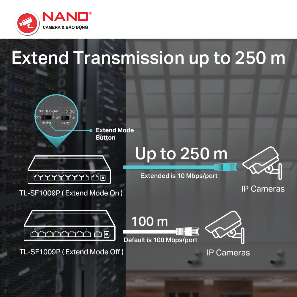TÍNH NĂNG: Chế Độ Mở Rộng Cho Truyền PoE 250m, Chế Độ Ưu Tiên Cho Cổng 1-2, Chế Độ Cách Ly, Cắm và Chạy