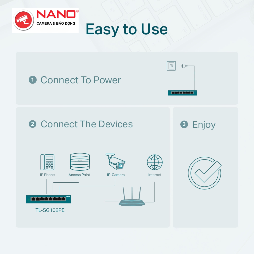 Switch Easy Smart, 8 cổng Gigabit với 4 cổng PoE+