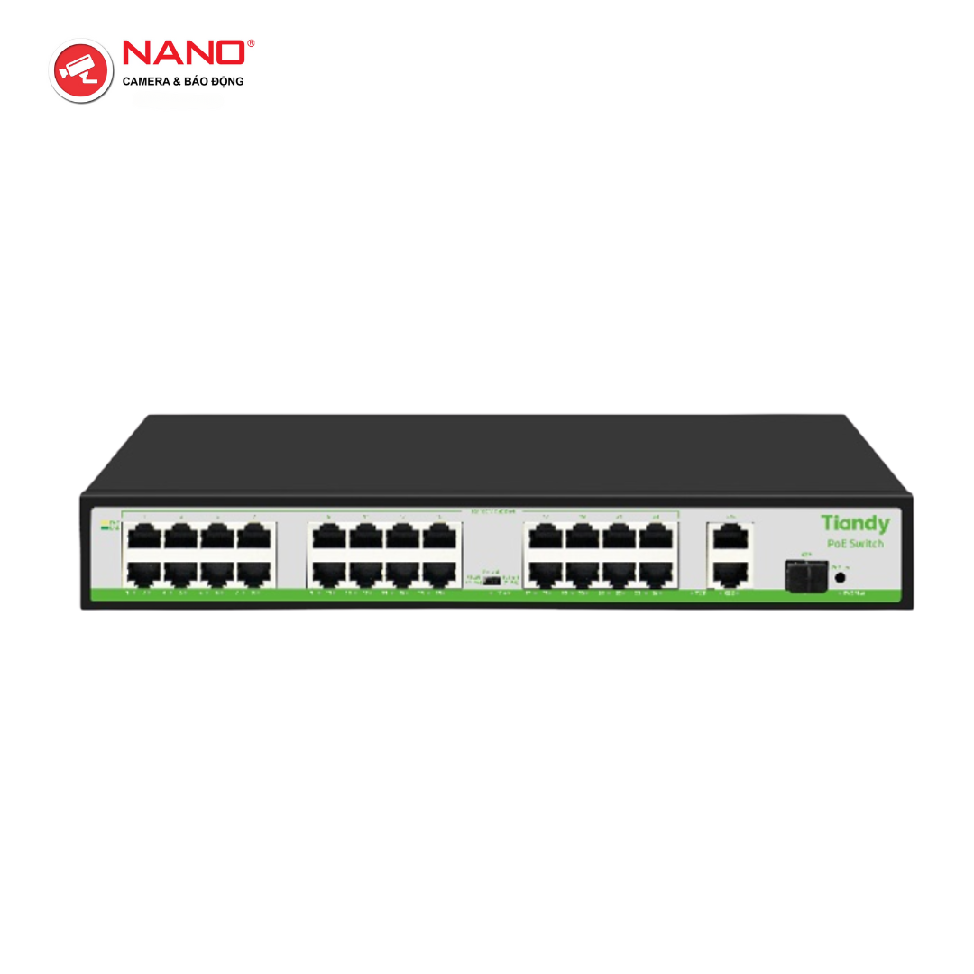 Switch TIANDY TC-P3S027 là một giải pháp mạng PoE mạnh mẽ, lý tưởng cho các hệ thống yêu cầu kết nối mạng tốc độ cao và cấp nguồn cho các thiết bị PoE như camera giám sát, Wi-Fi Access Points, IP phones và nhiều thiết bị mạng khác. Với 24 cổng PoE 10/100M, 2 cổng uplink Ethernet 1000M, và 1 cổng SFP 1000M, thiết bị này mang lại hiệu suất ổn định và khả năng mở rộng linh hoạt cho các hệ thống mạng lớn, cung cấp giải pháp cấp nguồn và kết nối mạng hiệu quả.