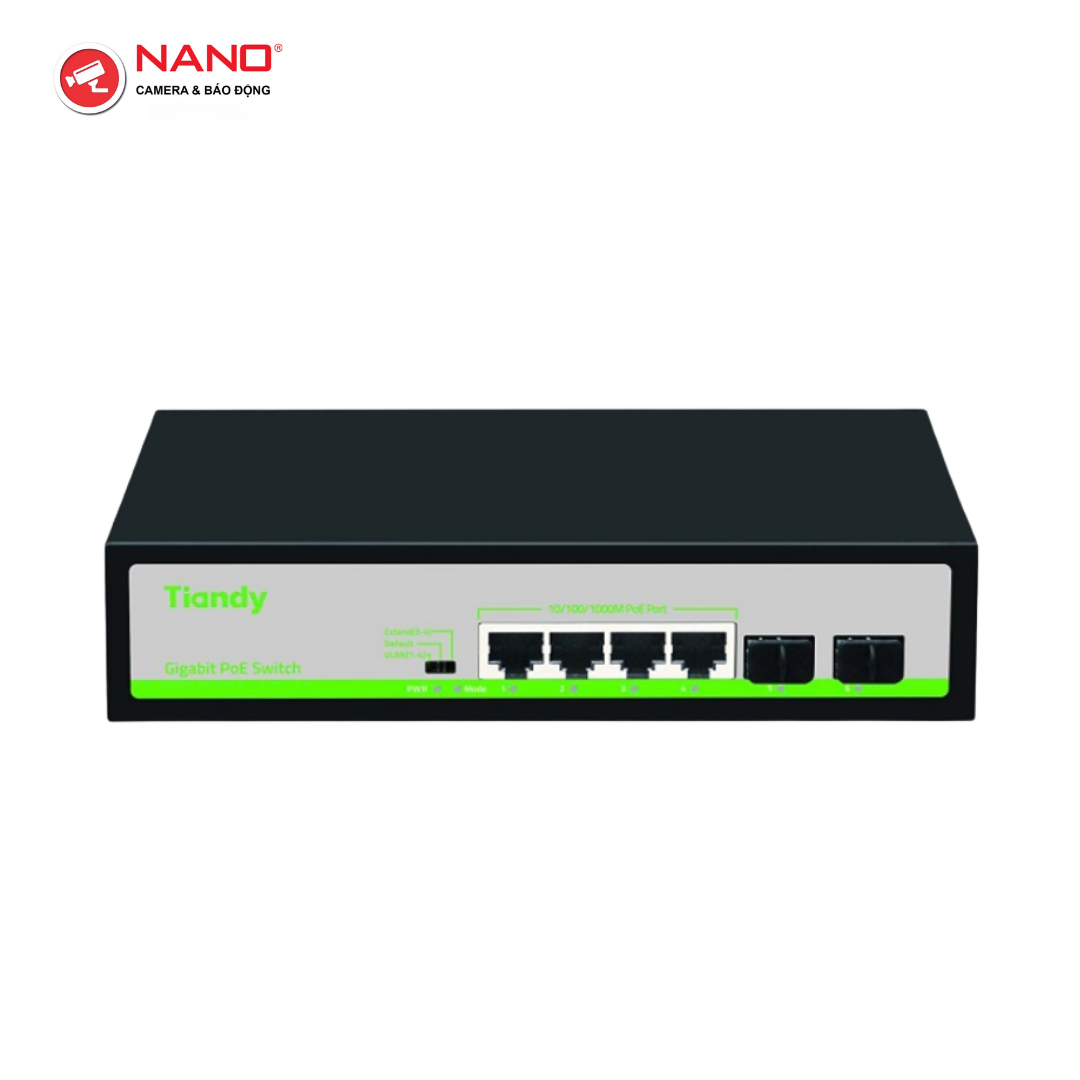 Switch 4 cổng GE PoE + 2 cổng SFP 1G TIANDY TC-P3S06 (H/0402/AT/60) – Giải pháp mạng hiệu quả cho doanh nghiệp