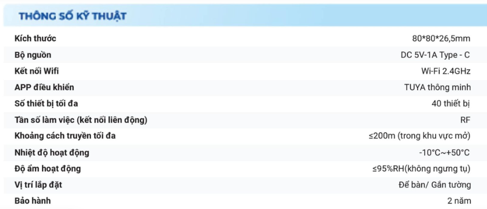 - Khoảng cách truyền tín hiệu tối đa 200m trong không gian mở.\