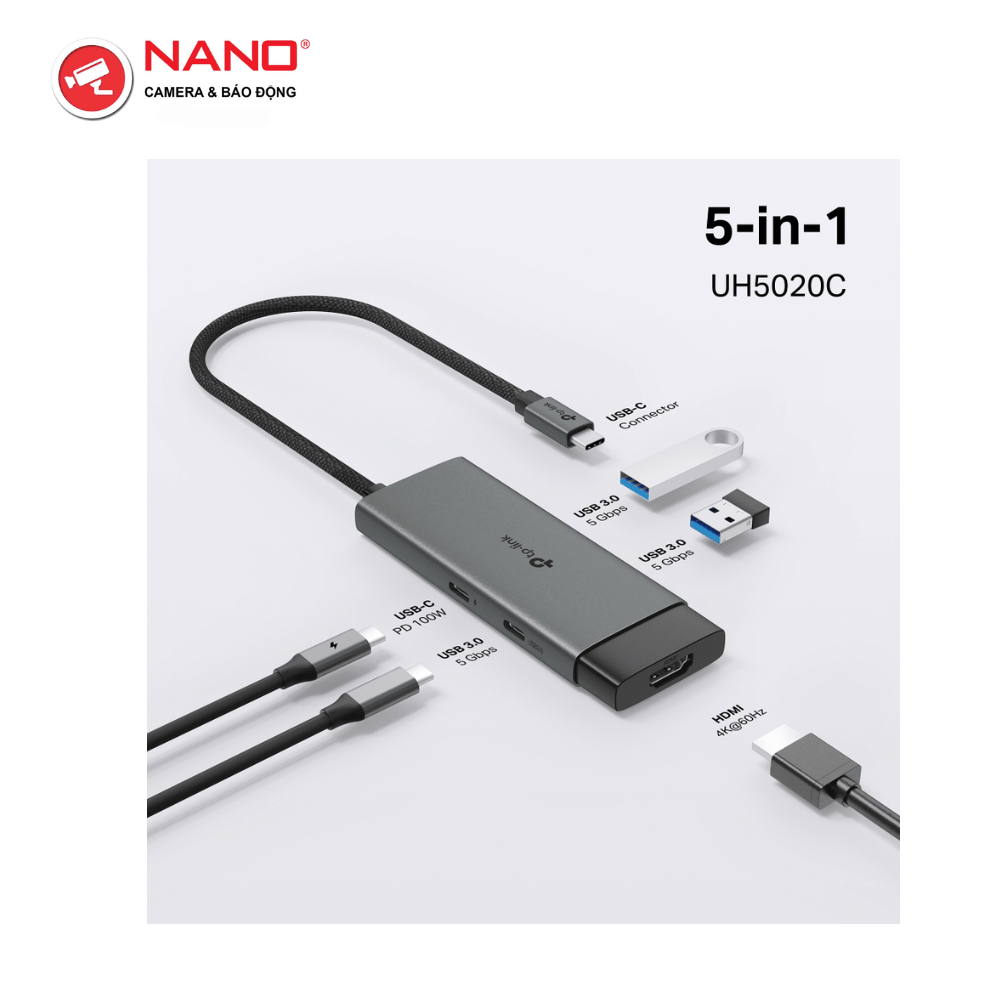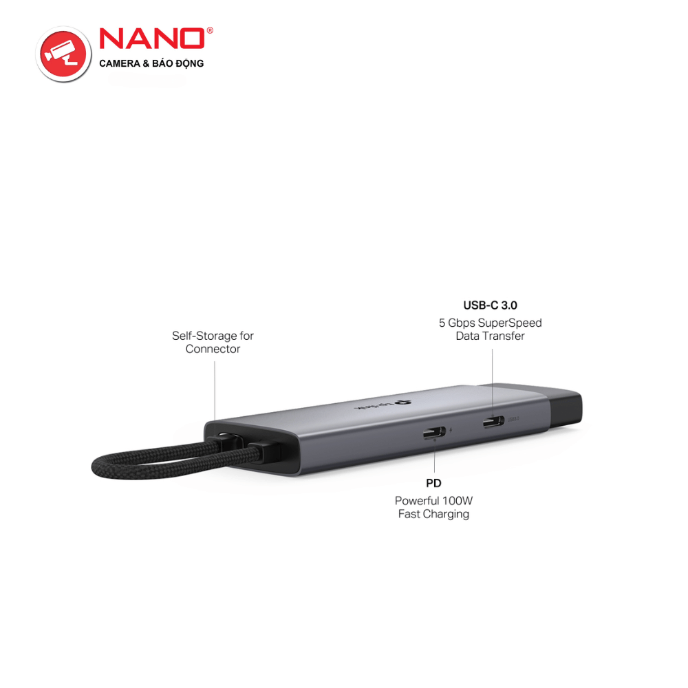 THÔNG SỐ KỸ THUẬT: 1 × Cổng USB-C, 1 × Cổng HDMI 4K 60Hz, 1 × Cổng USB-C PD 100W, 1 × Cổng SD + 1 × Cổng microSD (TF) tốc độ lên đến 200MBps, 2 × Cổng USB-A 3.0, 1 × Cổng USB-C 3.0